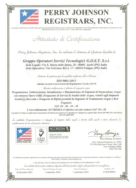G.O.S.T. ha ottenuto la procedura di qualità certificando i propri processi produttivi con la